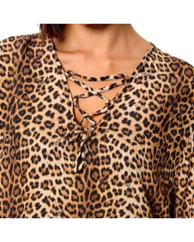 Abito corto donna Liu Jo kaftano, realizzato in viscosa con stampa animalier leopardata.