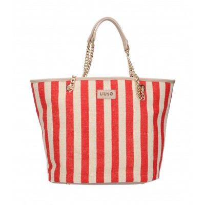 Borsa shopping Liu-jo tote XL Stupenda ecopelle/ tessuto red stripes BS21LJ93 AA1326