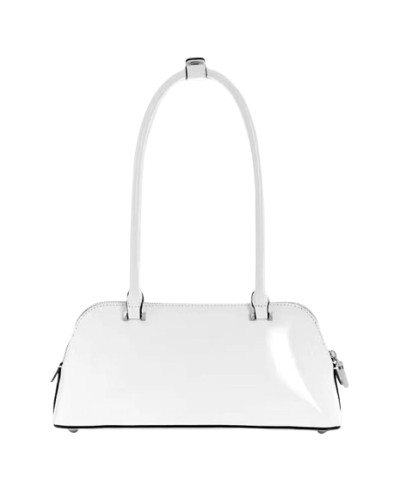 Realizzata in ecopelle effetto vernice, di colore bianco.