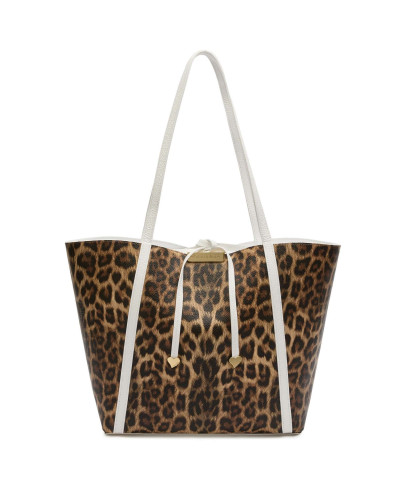 Interno in pelle con stampa effetto leopardato con dettagli in bianco.