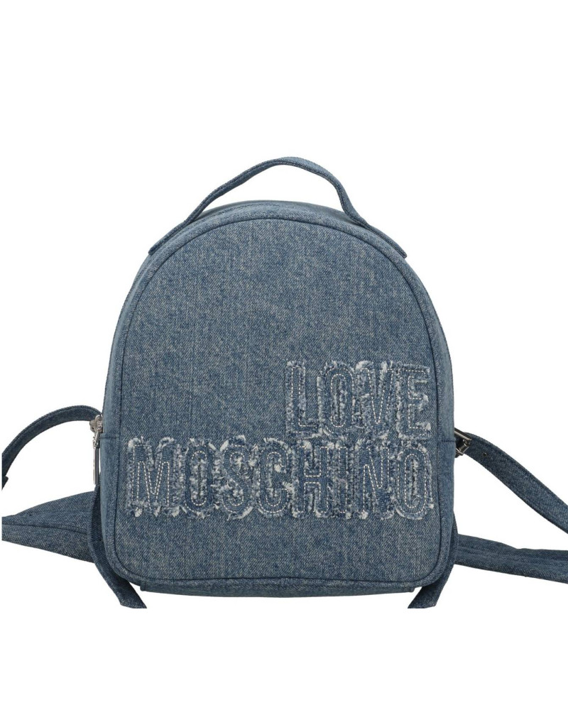 Borsa da donna Love Moschino, zaino in tessuto denim blu scuro.
