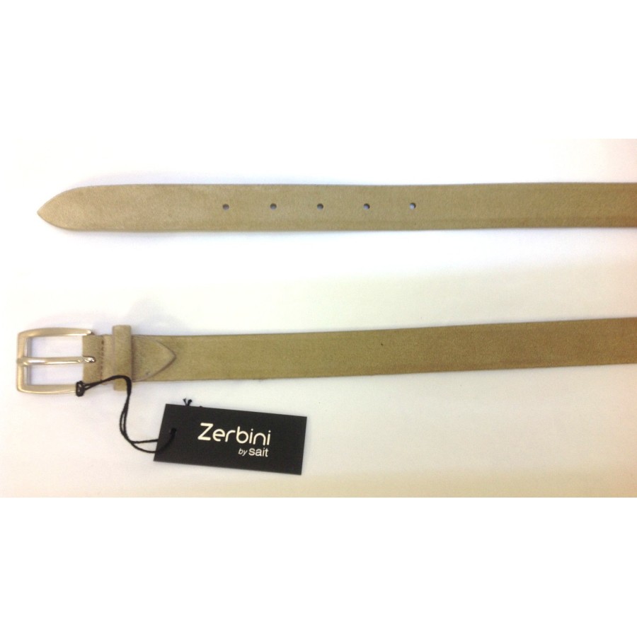 CINTA ZERBINI IN CAMOSCIO TAUPE CON FIBBIA CROMATA E SATINATA A VITE H. 2,5 CM