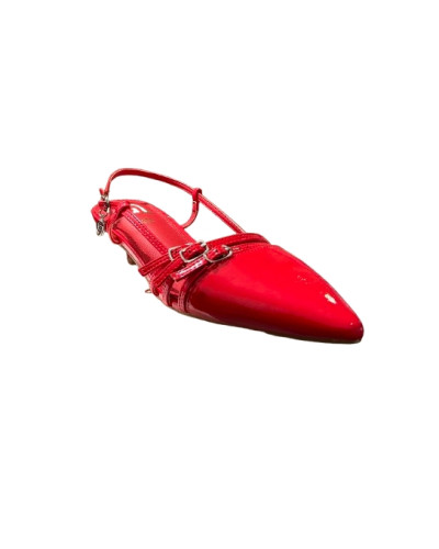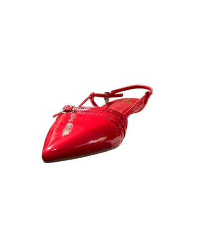 Realizzata in ecopelle effetto lucido di colore rosso.
