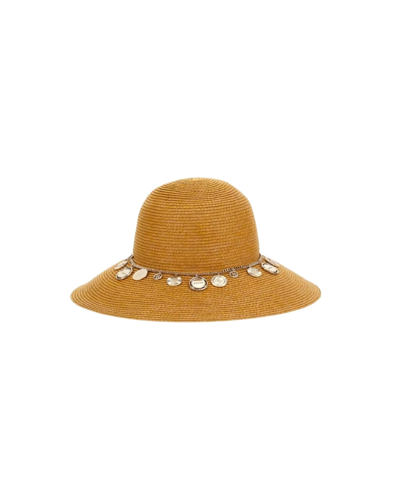 Cappellino donna Guess a tesa larga, in filato di carta.