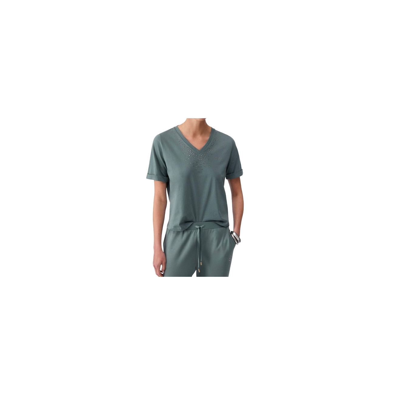 T-shirt donna Liu Jo, realizzata in cotone di colore verde militare.