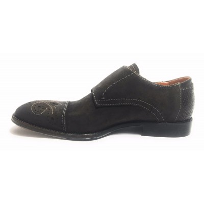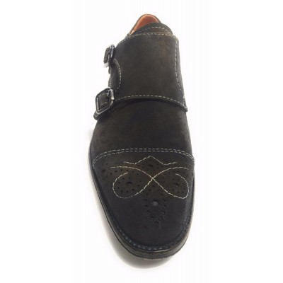 Scarpe uomo Lorenzi con doppia fibbia in pelle camoscio moro US17LO4