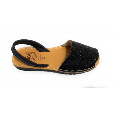 Sandalo donna minorchina Ska Shoes Ibiza in pelle nero/ glitter DS21SK02
