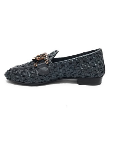 Scarpe Emanuélle Vee mocassino Valery in pelle intrecciata mat black donna DS24EV15 441M-219-13-LWM/BLA