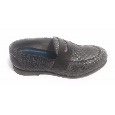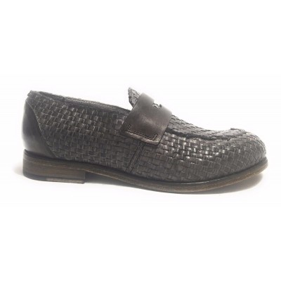 SCARPE UOMO CAVALLINI MOCASSINO F.CUOIO PELLE INTRECCIATA A MANO GREY