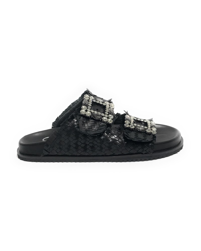 Scarpe donna sandalo/ ciabatta in pelle colore black DS24EL02 271