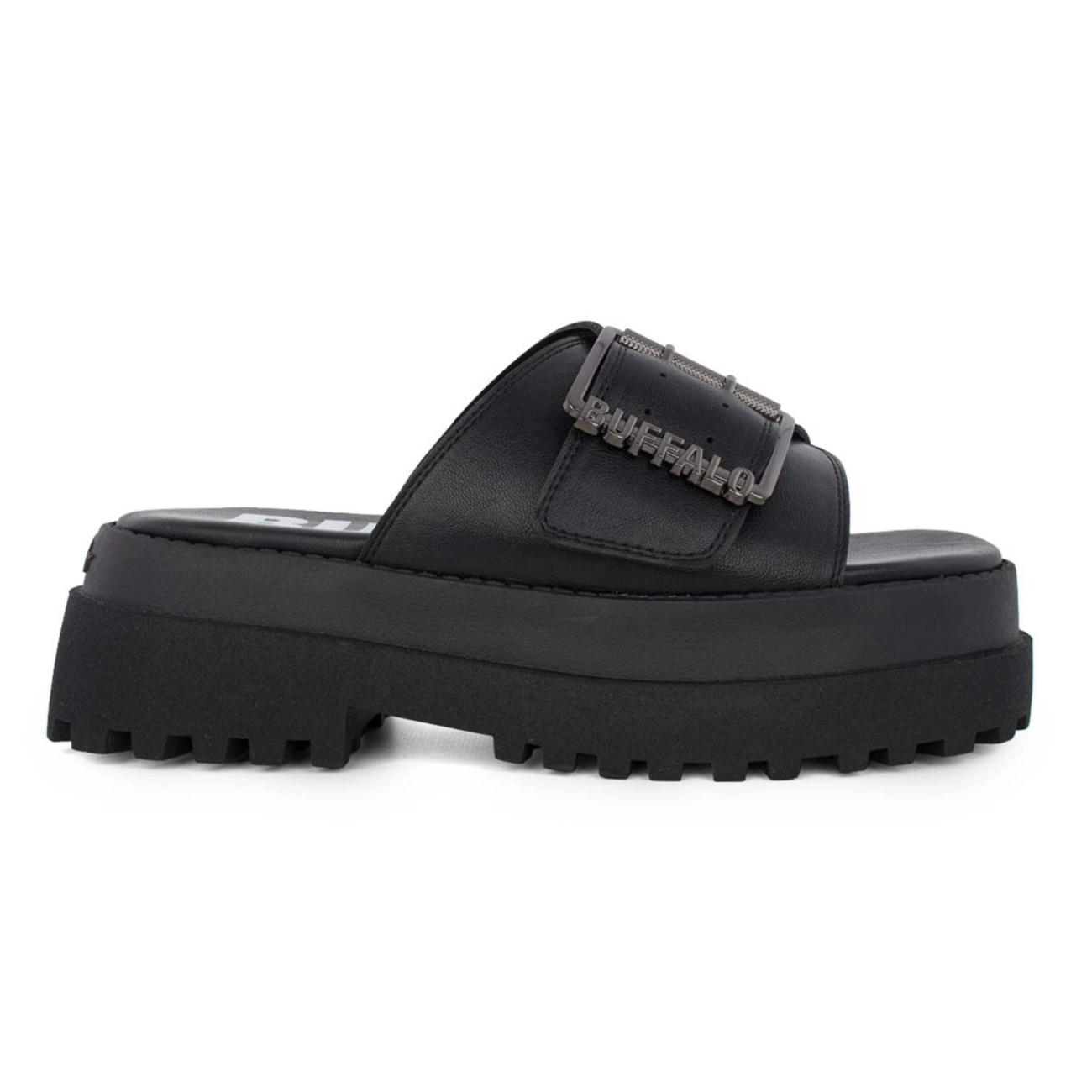 Slipper donna Buffalo Pluto Slide Buckle ecopelle vegan nero DS26BF01 BN1602333