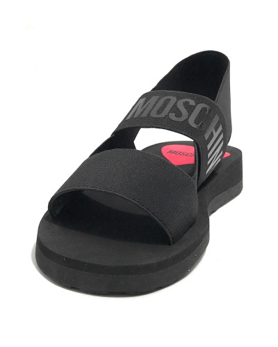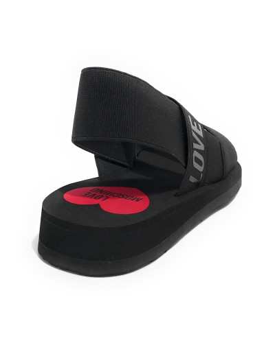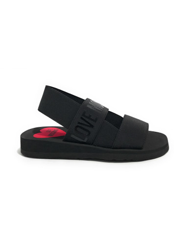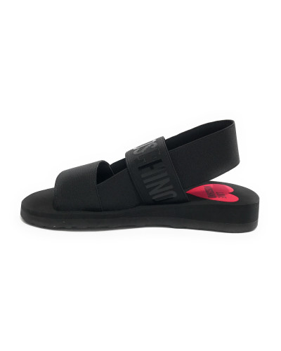 Sandalo da donna Love Moschino in tessuto di colore nero.