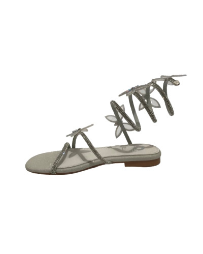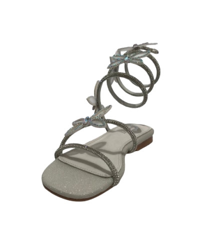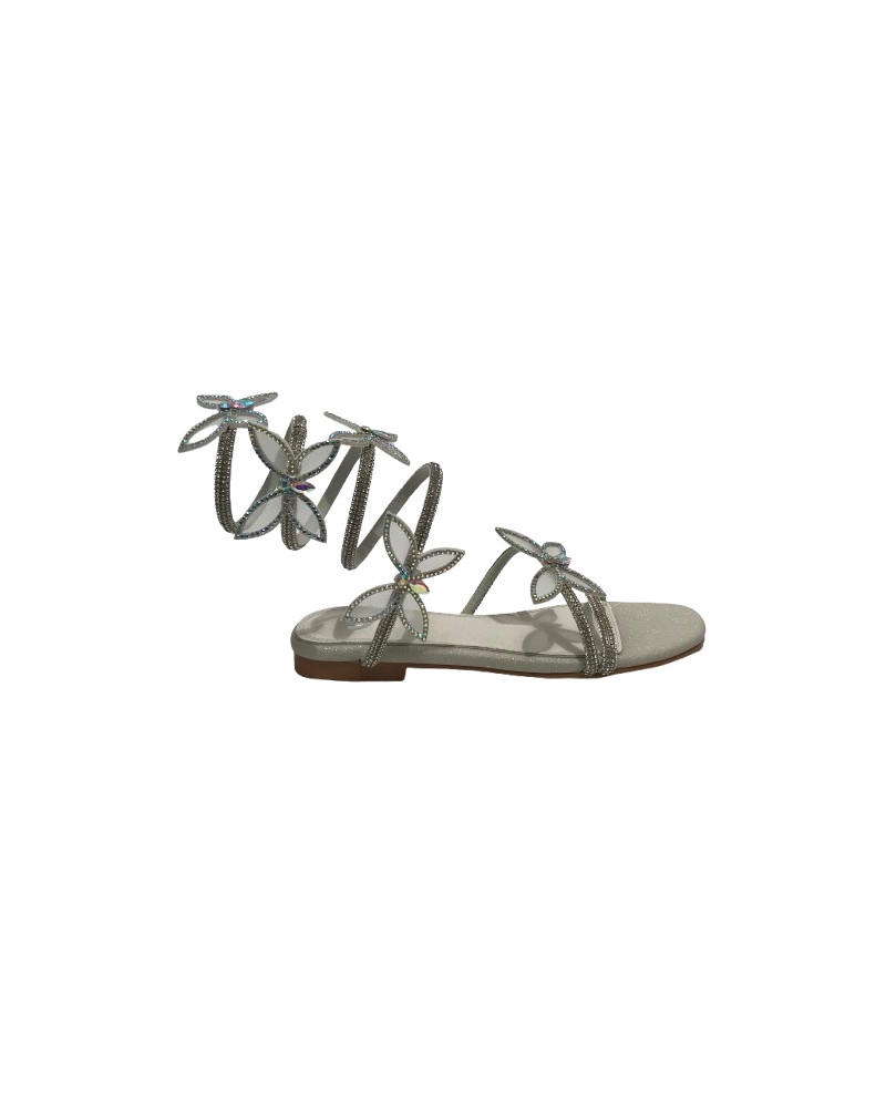 Allacciatura intrecciata alla caviglia a spirale, con decorazioni a farfalla in applicazione.