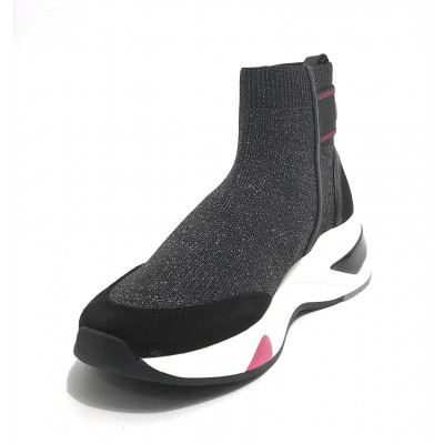 Scarpe donna sneaker calzino Liu-Jo Hoa 15 in suede/ tessuto nero D22LJ02 BF1023 TX196