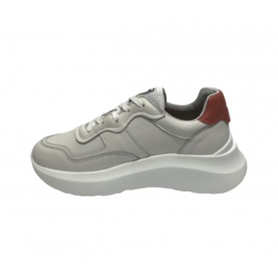 Scarpe donna Ambitious 12162W sneakers in pelle bianco / nude fondo alto DS22AM04