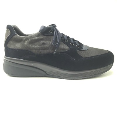 SCARPE UOMO SNEAKER INTERACTIVE GUARDIANI SPORT MODELLO GROOVE IN PELLE SUEDE BLU E GRIGIO FONDO INTERACTIVE ALTO AL TALLONE 5 CM E 2 CM IN PIANTA