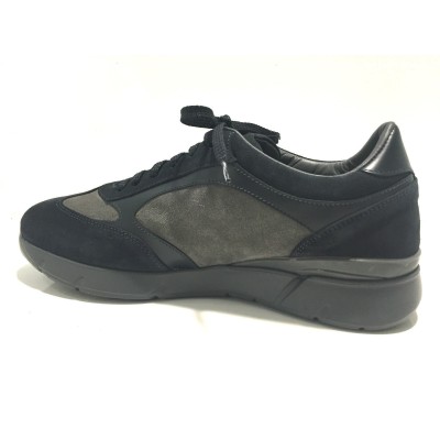 SCARPE DA UOMO SNEAKER INTERACTIVE GUARDIANI SPORT MODELLO GLOBE 2016 IN PELLE SCAMOSCIATA BLU E GRIGIO FONDO INTERACTIVE ALTO AL TALLONE 4 CM E 2 CM IN PIANTA FUSBET ESTRAIBILE CALZATA ESTREMAMENTE COMODA E GRADEVOLE .