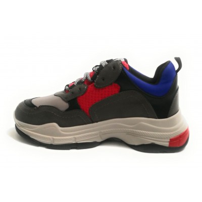 SCARPE SNEAKER ZEPPA GOLD&GOLD DONNA ECOPELLE E TESSUTO GRIGIO/ROSSO/BLU D19GG10