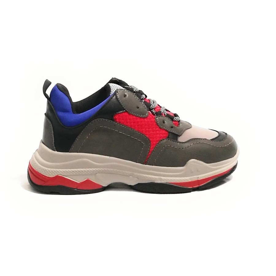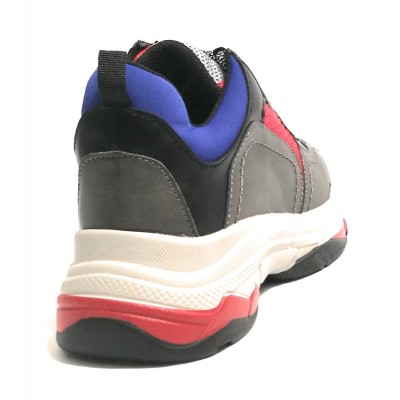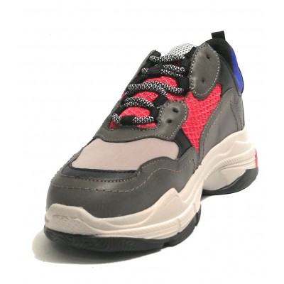 Scarpa da donna Gold&Gold, sneaker fondo zeppa in ecopelle e tessuto colore grigio, rosso e bl, con inserti colore nero.