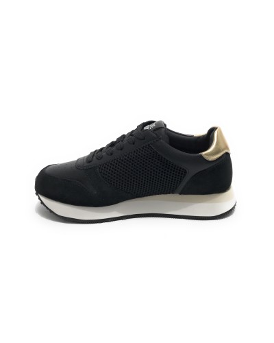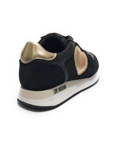 Scarpa da donna sneaker Love Moschino, in pelle e pelle scamosciata di colore nero.