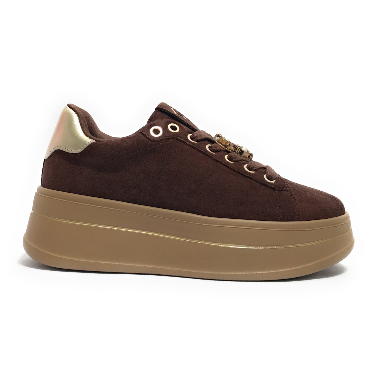 Scarpa da donna Gold&Gold, in ecopelle scamosciata di colore marrone.