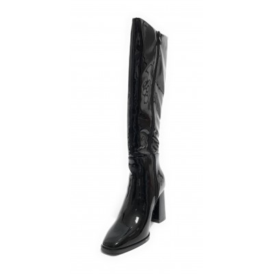 Scarpe donna stivale alto Gold&gold in ecopelle nero vernice D23GG35 GF115