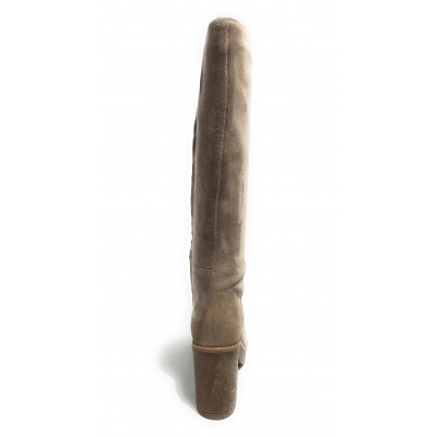 Scarpe donna stivale con gambale alto fondo classico in pelle camosciato beige D23EL09 91147