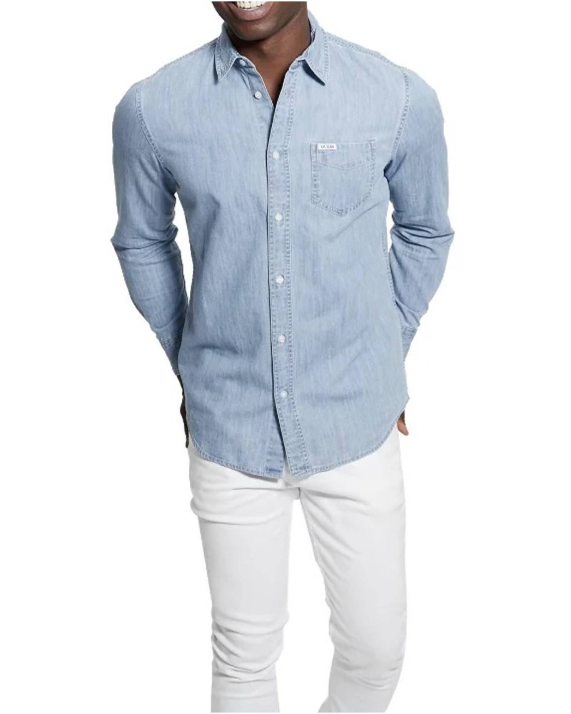 Camicia jeans uomo Guess, taglio slim, in tessuto stretch.